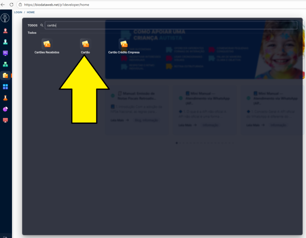 Você pode acessar o cadastro de cartões de duas formas: