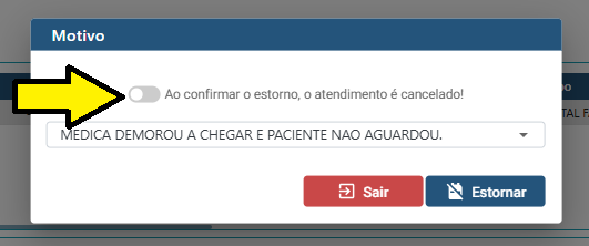 Selecione o motivo adequado e finalize o estorno conforme a necessidade.
