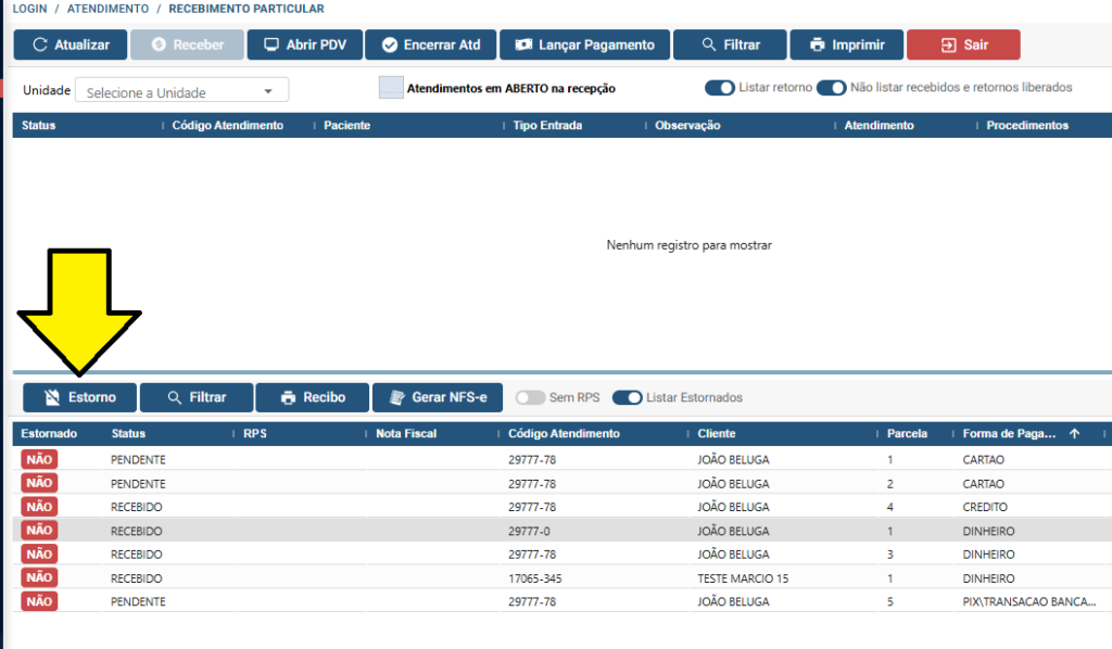 Realizar o estorno de pagamentos de atendimentos particulares em situações como:
